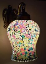 Add a touch of art and tradition to your interiors with the Mosaic Glass Elephant Wall Lamp. Featuring a beautifully handcrafted mosaic glass shade and a sturdy elephant-shaped metal base, this lamp is more than just lighting—it’s a statement piece of décor.