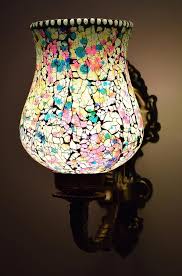 Elegant mosaic glass wall lamp with an elephant-shaped metal base. Perfect decorative downlight for home interiors and a unique gifting option.